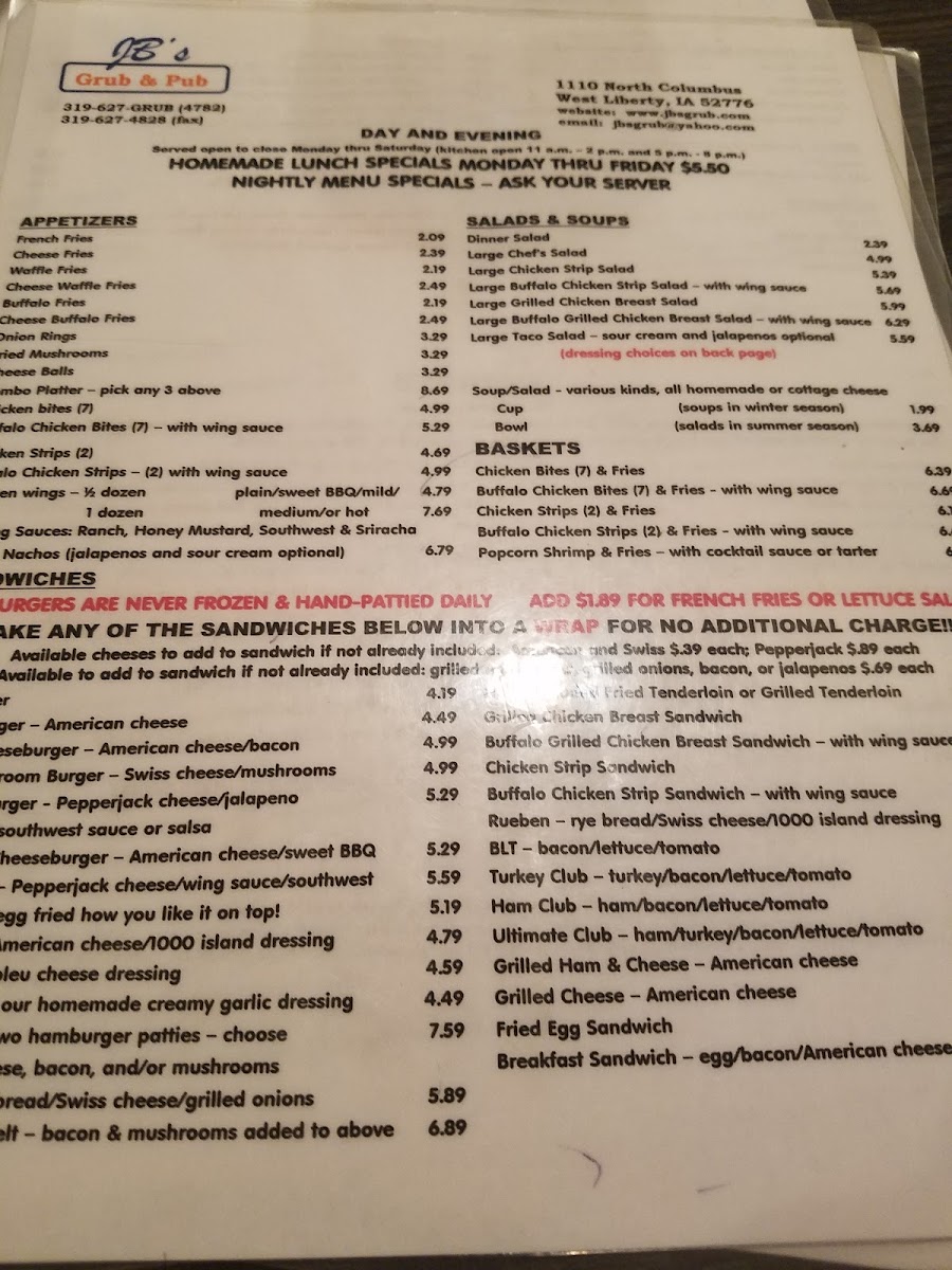 Welcome to JB's Grub & Pub, an inviting eatery nestled in the heart of West Liberty, IA. This charming spot is perfect for locals and visitors alike, offering a delightful escape with its warm ambiance and friendly service.